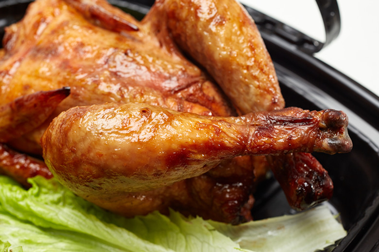 一大早,到菜市場趕早市的人們聞著烤雞香味,紛紛來到店內,得知烤雞還未烤制好,立馬預定。