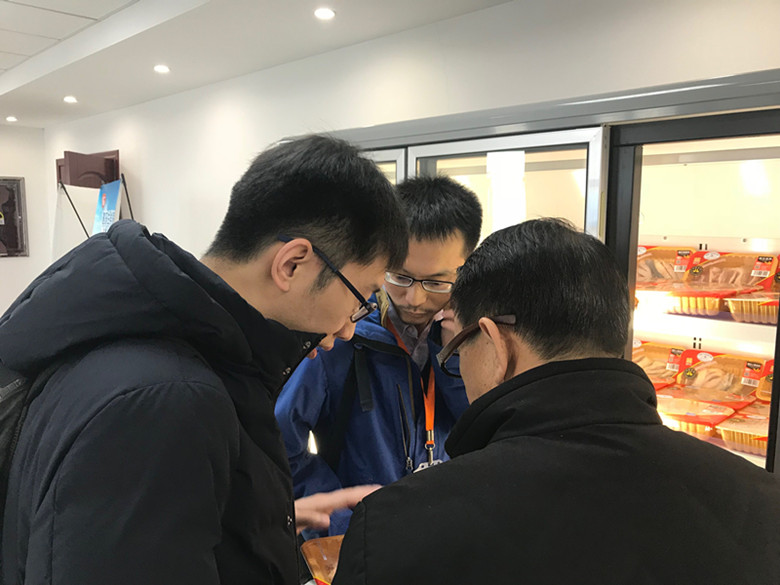 湘佳生鮮家禽產品陳列室,茶園雞、橘園雞、青腳雞、土黑雞、黃油母雞、麻雞、石門土雞等各種雞肉分割品,老人雞肉、兒童雞肉、孕產婦雞肉以及各種雞肉調理品琳瑯滿目,兩位年輕人逐一拿出一件件陳列品,仔細辨認,并從包裝設計、產品特性、養殖日齡、產品說明等方面提出了許多合理化建議,并希望湘佳生鮮家禽要更多地順應“新零售”的趨勢,不斷抓住消費者的購買“痛點”。