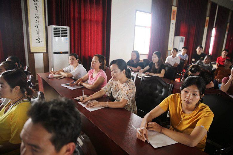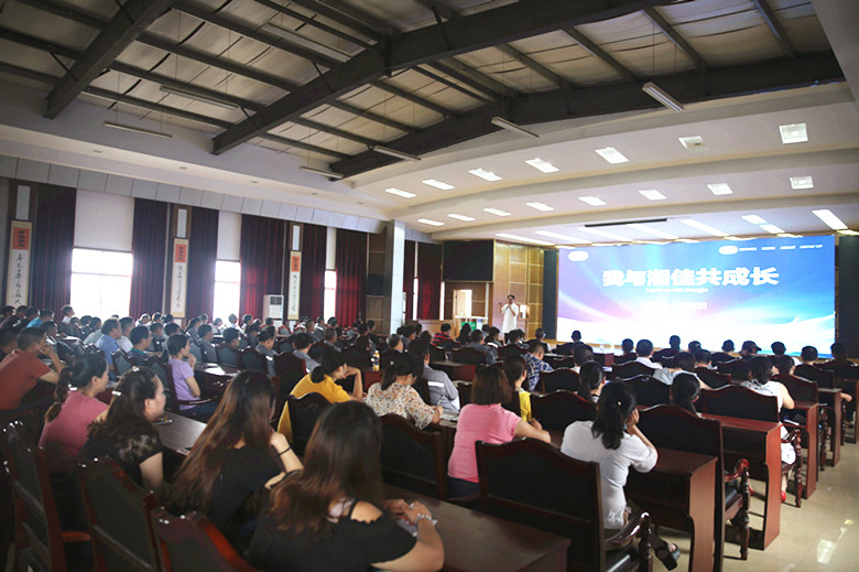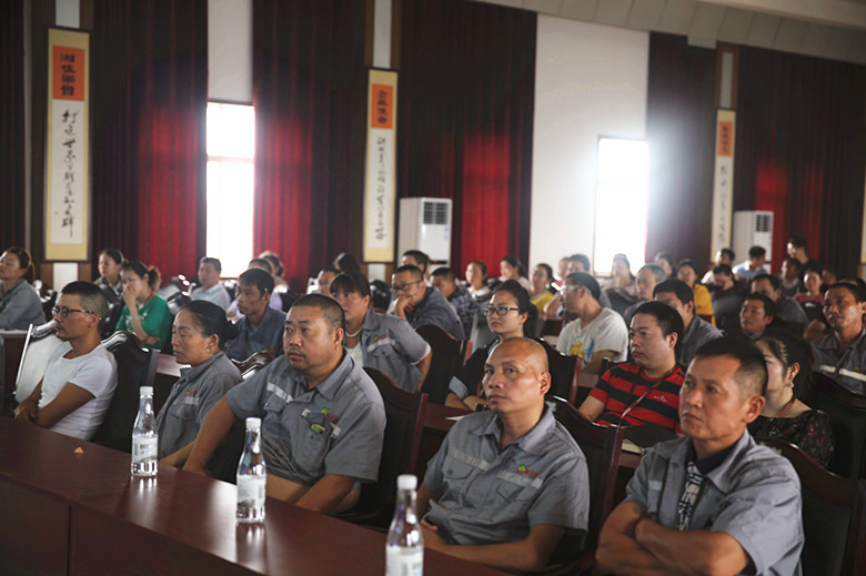 7月16日,湘佳孵化部、服務部、種禽部、配貨部兩百多名員工利用休息時間齊聚一堂參加主題為《我與湘佳共成長》的培訓會。