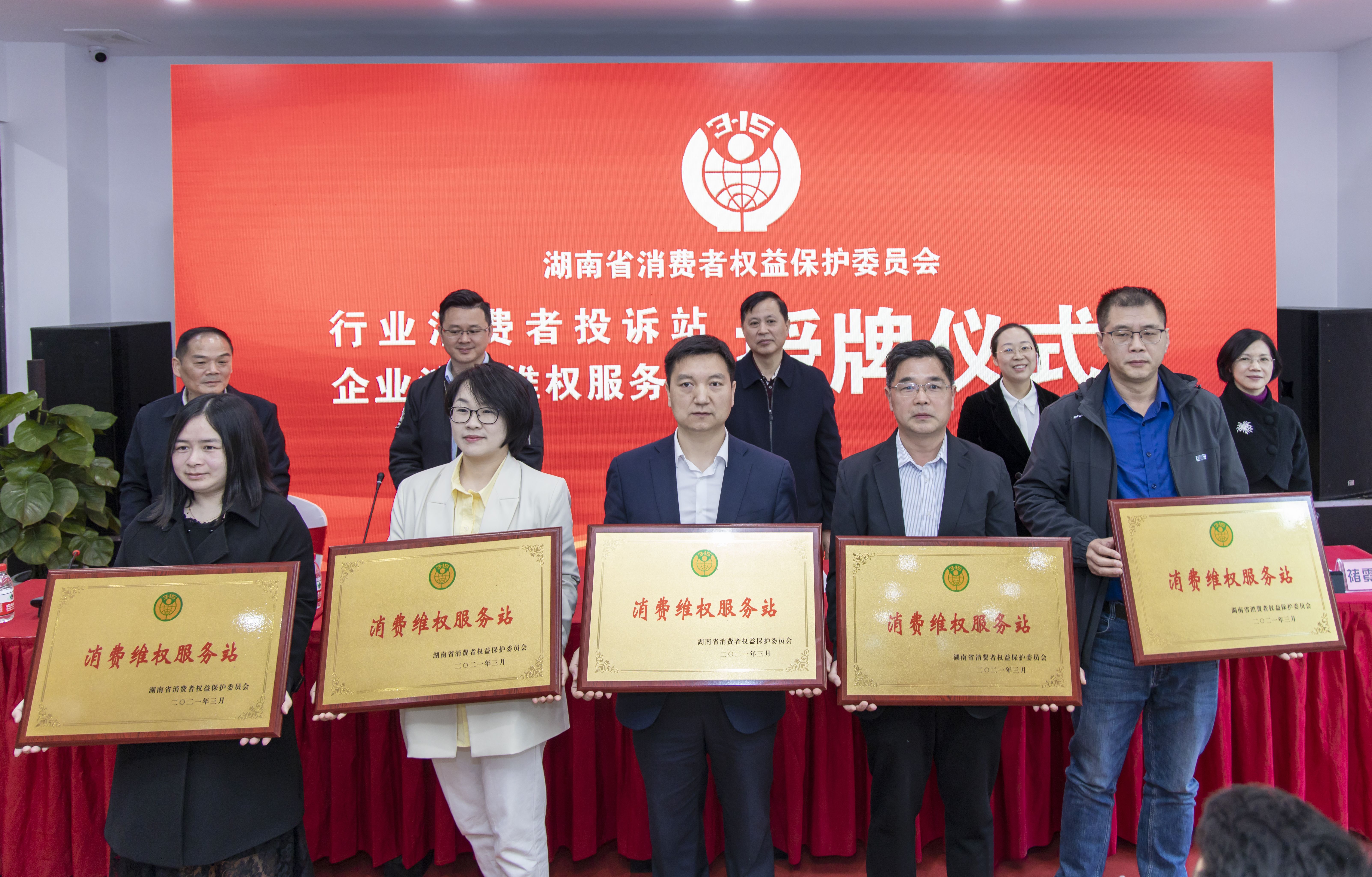 (3月25日,湖南省消保委為湘佳股份等10家企業(yè)頒發(fā)“消費(fèi)維權(quán)服務(wù)站”牌匾。)