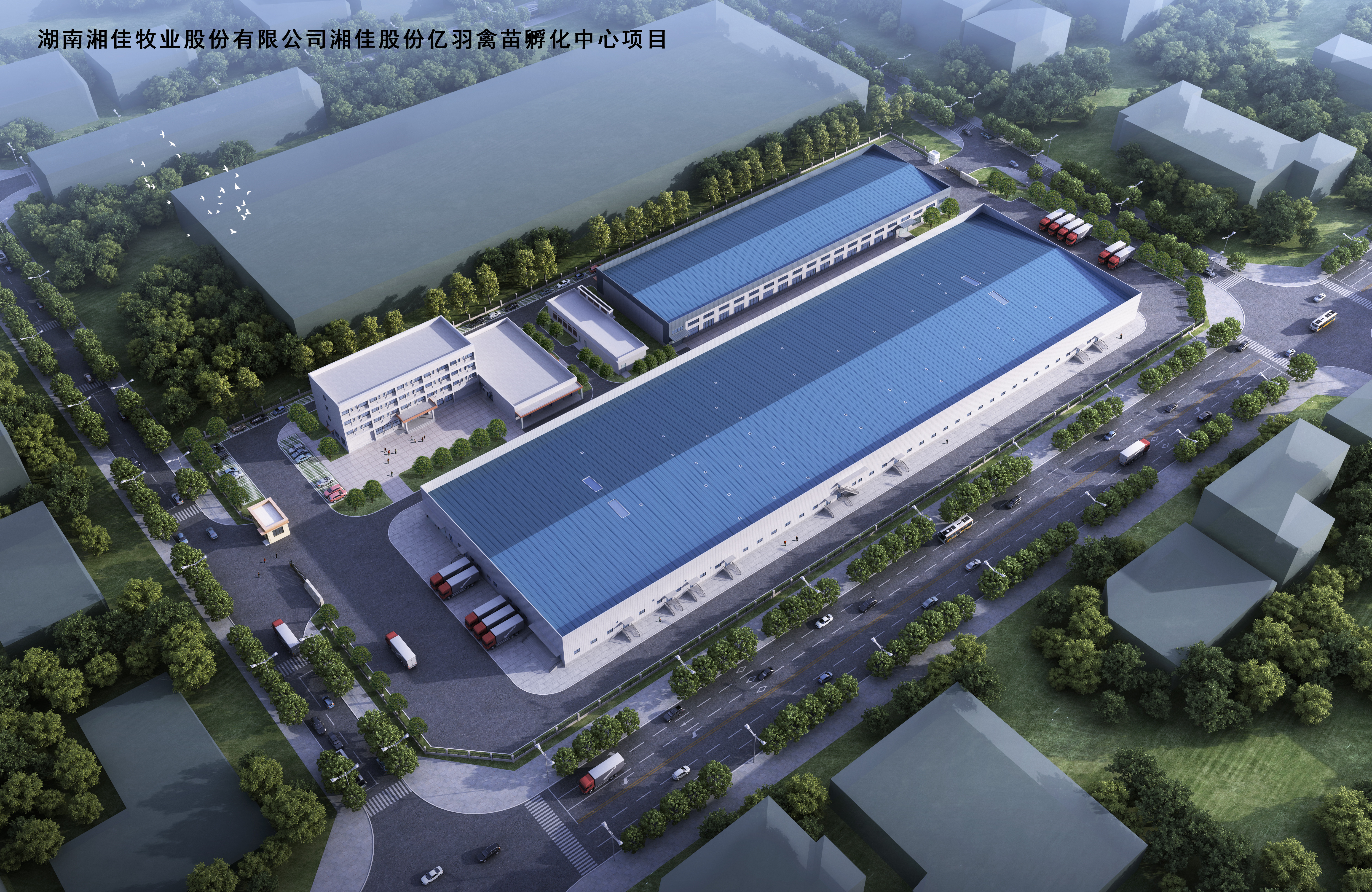 湘佳股份億羽禽苗孵化中心位于石門縣二都街道南峰社區和陳氏祠社區結合部,總建筑面積41548平方米。