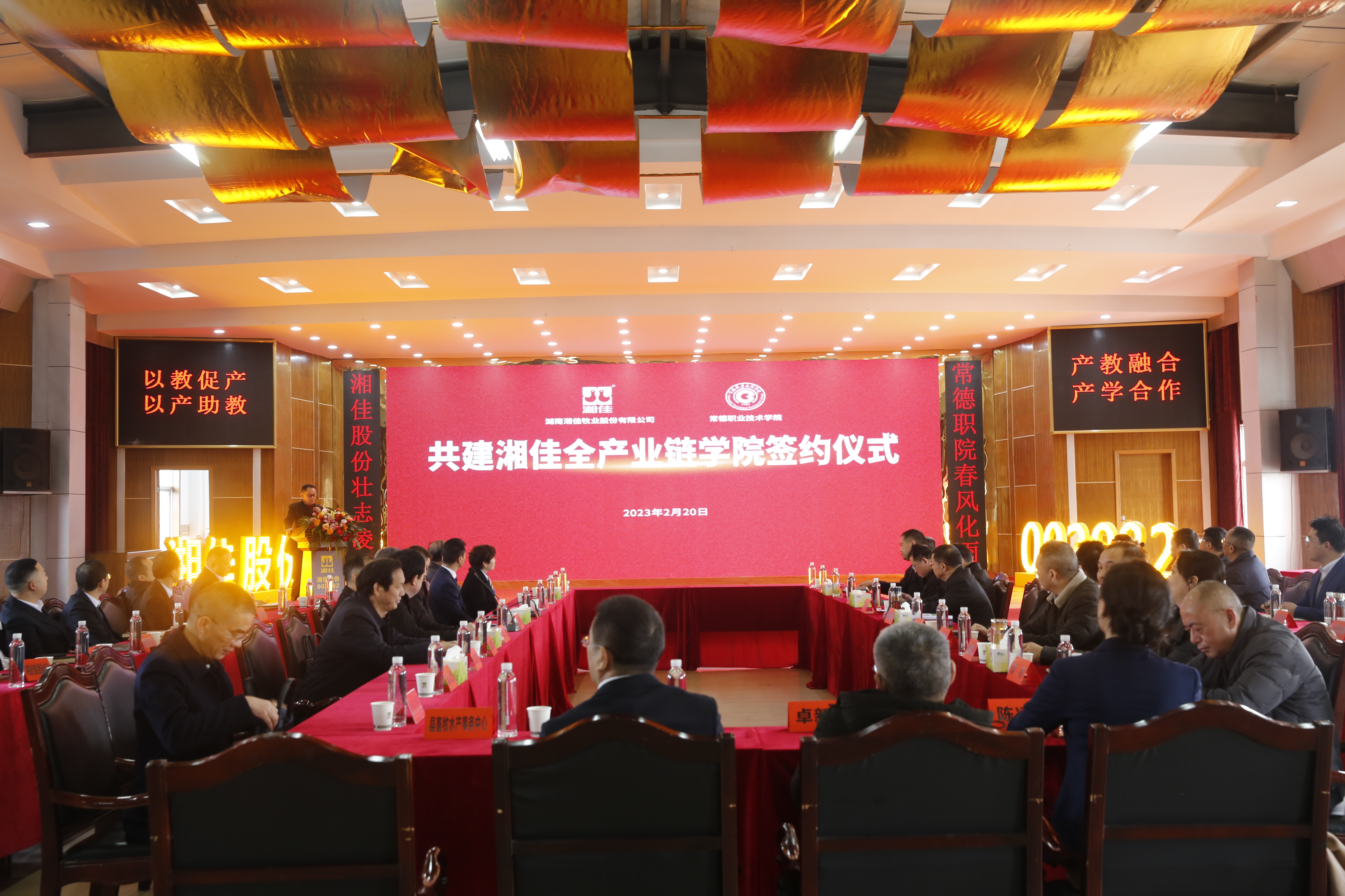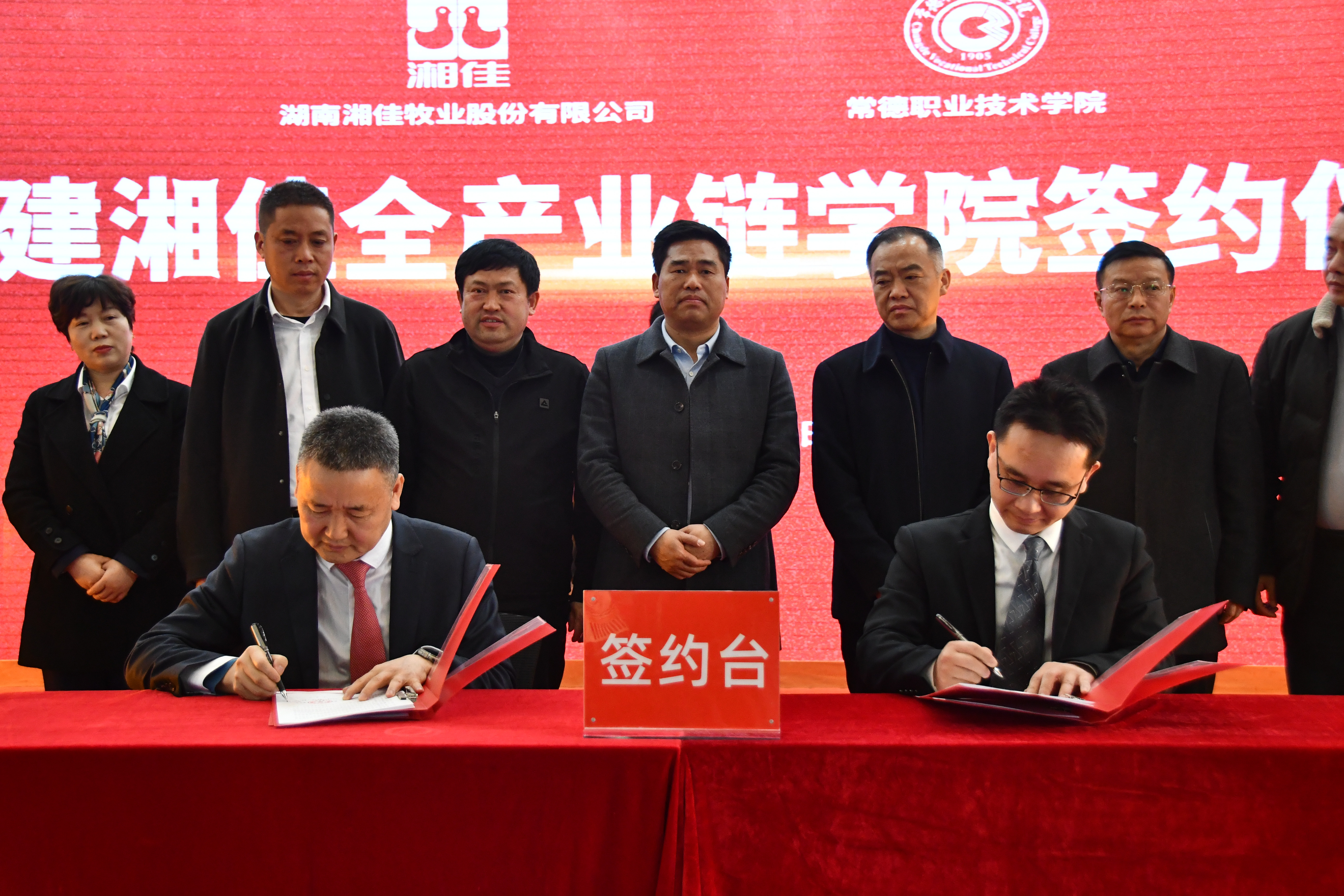 2月20日上午,湖南湘佳牧業股份有限公司與常德職業技術學院在湘佳股份總部舉行簽約儀式,共建“湘佳全產業鏈學院”。