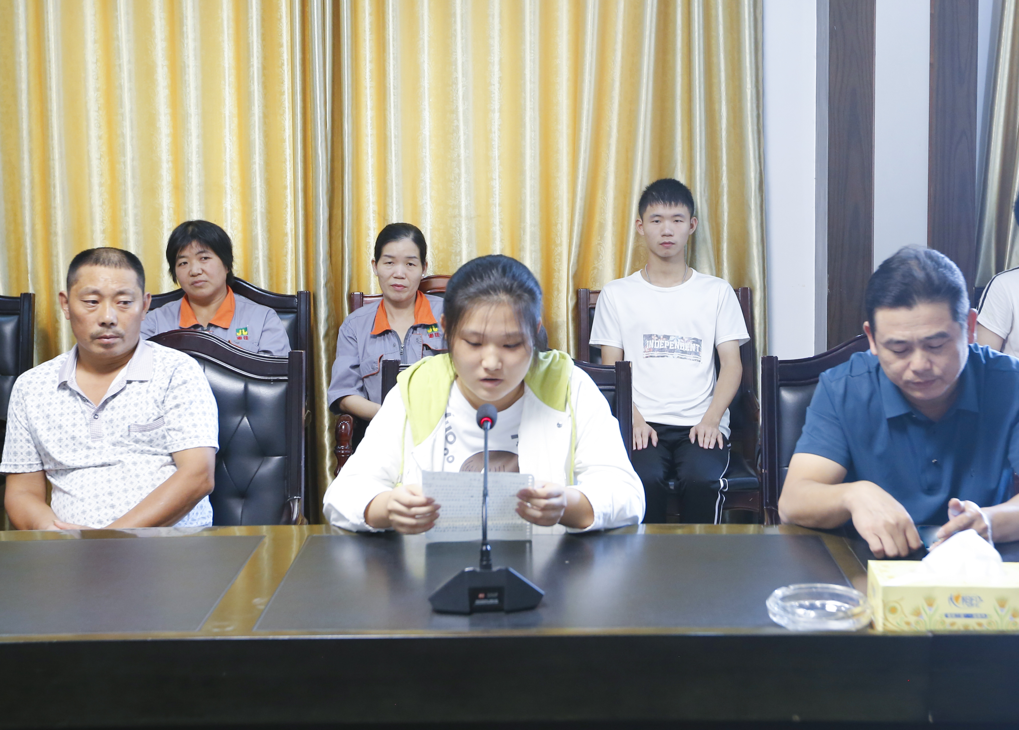 公司財務總監唐善初代表湘佳股份向同學們表示熱烈祝賀,鼓勵同學們要在學習上追求進步、在實踐中追求創新、在磨礪中不斷成長,完善自我,成為知識豐富、品質優秀、實踐能力強的社會棟梁之才。人力資源部經理唐慧宣讀助學金發放名單。