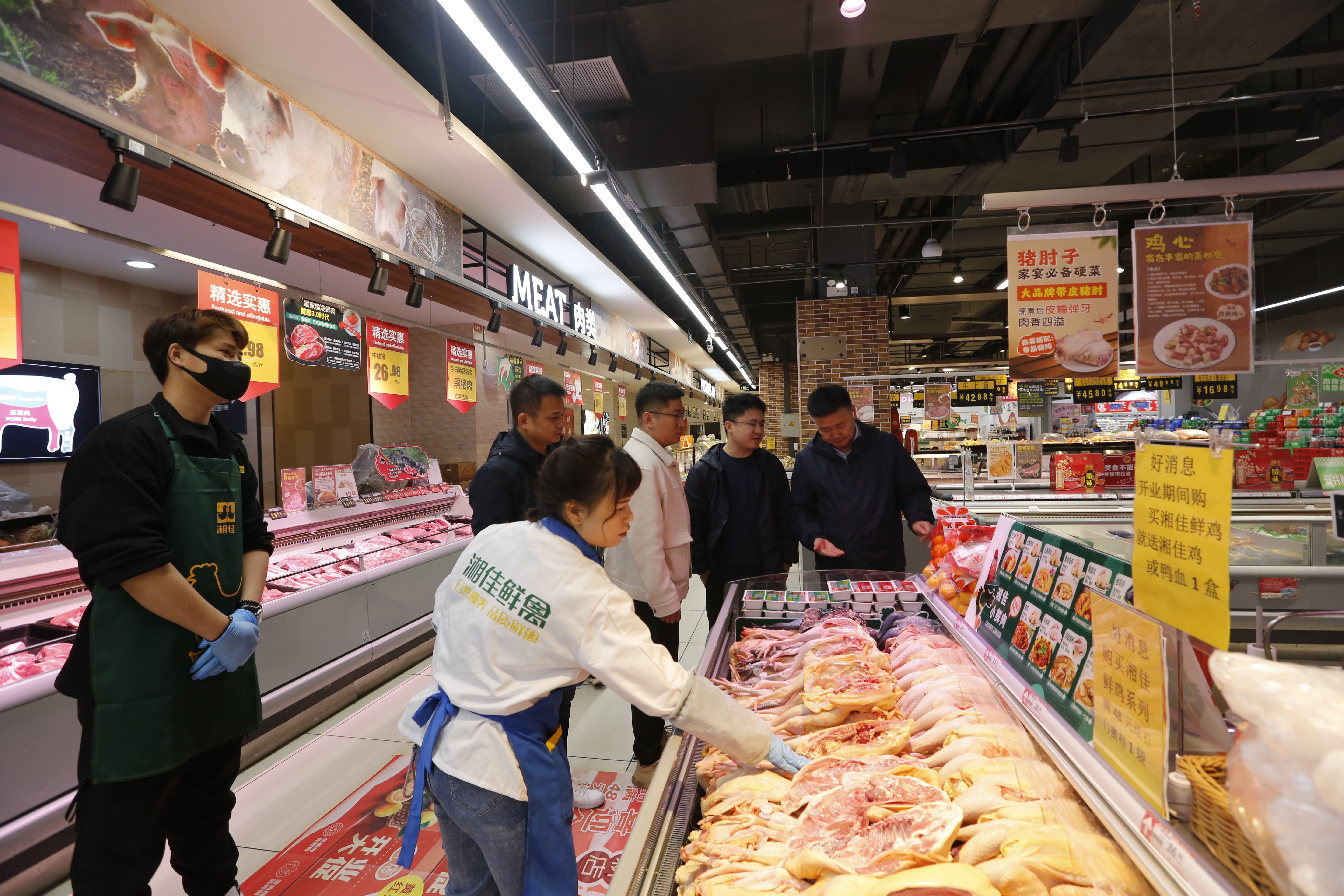 “從超市早上開(kāi)門(mén)開(kāi)始,就一直有顧客來(lái)詢(xún)問(wèn)和購(gòu)買(mǎi)我們公司的雞肉,第一天就在內(nèi)蒙古這個(gè)新市場(chǎng)搞了一個(gè)開(kāi)門(mén)紅?!惫ぷ魅藛T一邊忙著給顧客剁肉,一邊給湘佳股份董事長(zhǎng)喻自文和副總裁趙柯程匯報(bào)首日銷(xiāo)售情況。