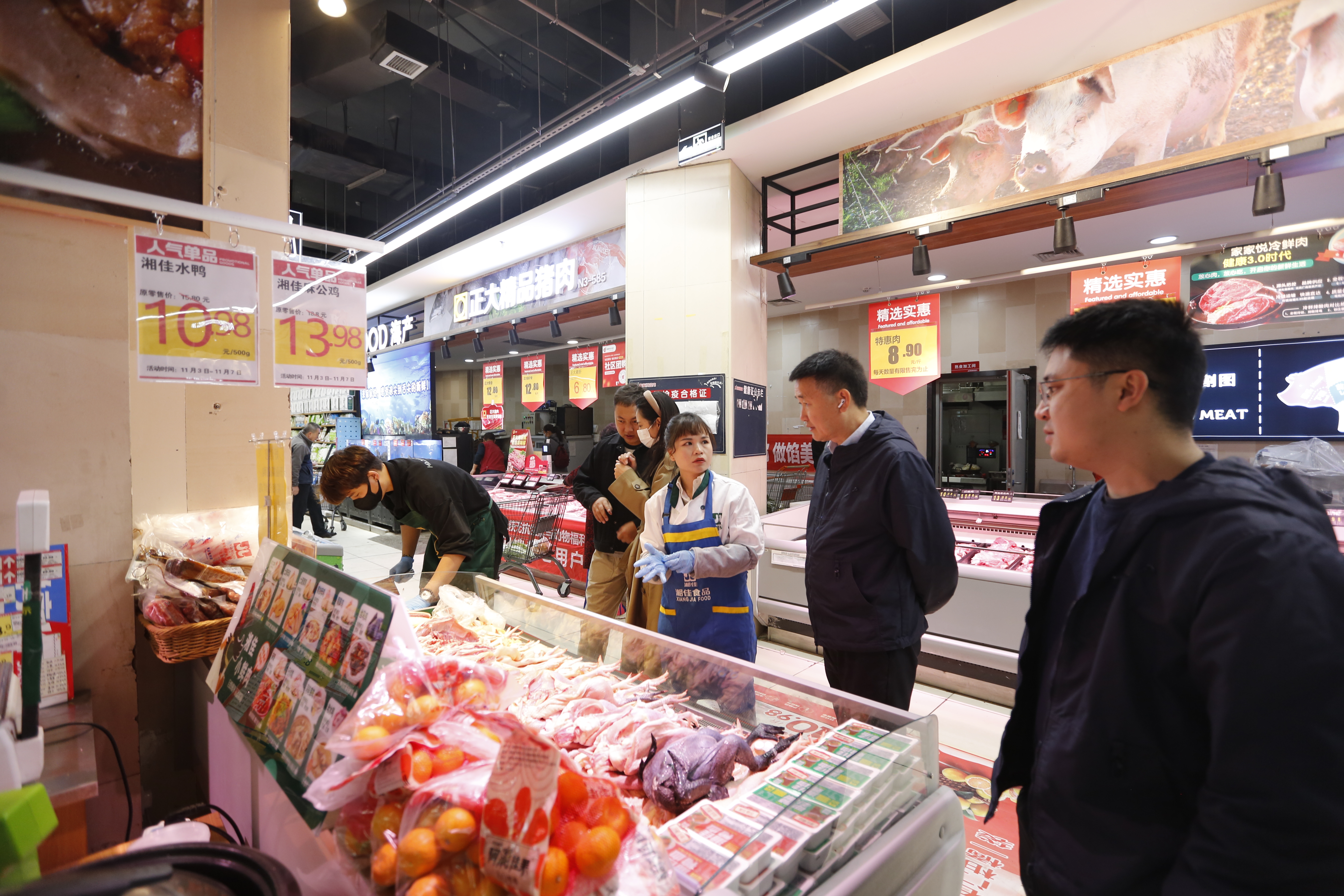 11月4日,在內(nèi)蒙古呼和浩特的家家悅、北京華聯(lián)等8家大型連鎖超市內(nèi),湘佳股份鮮禽專(zhuān)區(qū)正式開(kāi)賣(mài)。首次進(jìn)駐內(nèi)蒙古市場(chǎng),湘佳這個(gè)品牌引起了廣大市民的好奇和圍觀,不斷有市民前來(lái)詢(xún)問(wèn)湘佳雞的口感和食用方式,氛圍火爆。